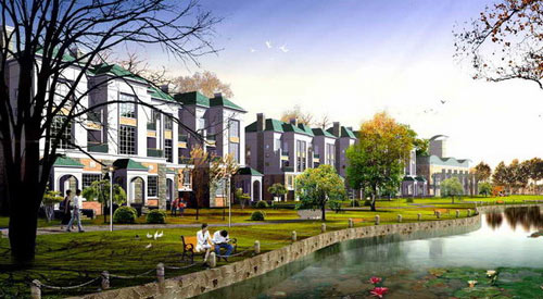 因为人对水的向往在缺水的地区尤其,似乎有水景的项目就意味着高品质的居住环境,因为在大社区的开发过程中,开发商在景观设计中会想出很多方法来造水,建筑师在设计过程中对设计手法的应用有这个三个层次: