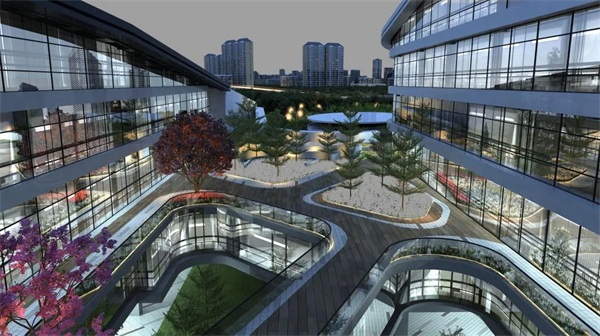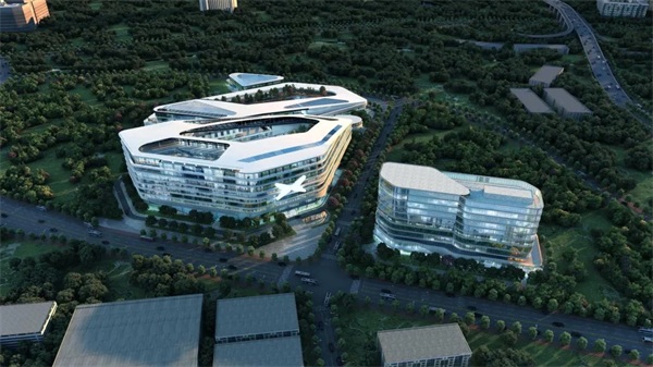 以动势体量打破地块限制,塑造科技浪潮建筑形象