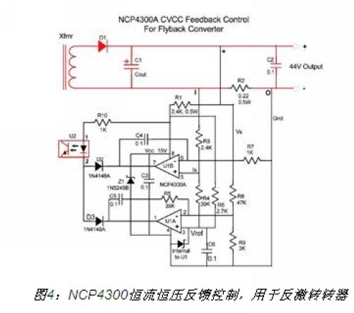 图4:NCP4300恒流恒压反馈控制,用于反激转转器