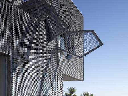 外部的网孔设计目的是使得阳光照射的不同种颜色照进屋子。