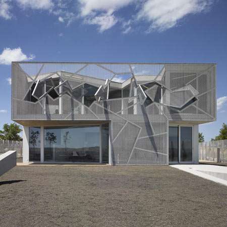 该两层建筑叫做Casa Zafra,由NO.MAD Arquitecos 的Eduardo Arroyo 设计,从钩状几何图案得到灵感,建筑的正面是个网线结构的墙壁,它的作用是保护员工免受可能飞来的高尔夫球袭击。