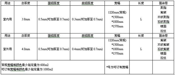 产品规格表