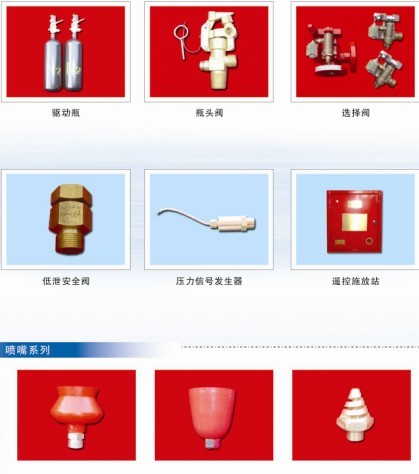系统主要由灭火剂贮存装置、驱动装置、选择阀、气体单向阀、压力讯号器、喷头、管道系统等组成,在需要启动系统灭火时,可经人工遥控操作或就地应急手动操作施放灭火剂进行灭火操作。本系统与火灾自动探测报警控制系统联合使用,可实现对火灾的自动探测、报警、并进行遥控操作或自动灭火。