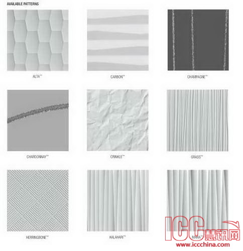 Forms Surfaces黏合石英砖结合瓷砖的微粒结构和增强纤维聚合物结构,使产品材料轻质、耐用、易于清洁。产品标准色是白色,针对大型项目,提供定制色彩服务。