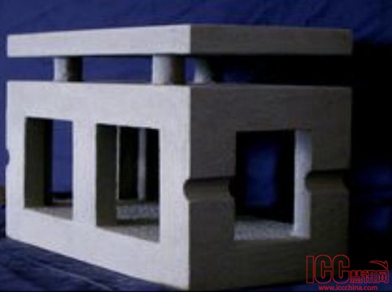 MASA新型复合自保温砌块是由主体砌块、外保温层、保温芯料、保护层及保温连接柱销组成。主体砌块的内、外壁间、主体砌块与外保护层间,是通过“L型T型点状连接肋”和“贯穿保温层的点状柱销”组合为整体,在柱销中设置有钢丝。在确保安全的前提下,最大限度地降低冷桥效应,具有极其优异的保温性能。这为选用建筑垃圾、细石、尾矿等高强度粗细集料提供了必须的前提条件。
