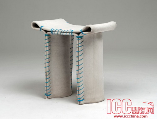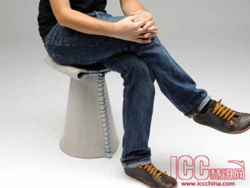 德国设计师Florian Schmid设计了一种“缝合混凝土”座椅,这个设计受到了混凝土帆布(CC)材料的影响。混凝土布料(CC)是一种浸渍了布料的柔软水泥,它在水合过程中变硬,最终形成一个轻薄的,防水防火的混凝土表皮。这种材料将柔软温暖的布料质感和坚硬冰冷的水泥融为一体。