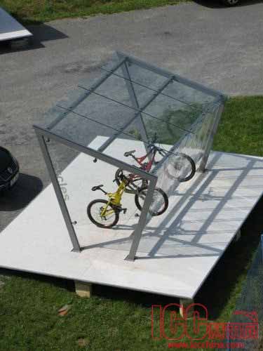 如今,自行车不再只是穷人的交通工具,因而设计应当回应这一事实。EDGE自行车棚具有不容置疑的活力外形,配合坚固耐用的框架和精巧细腻的玻璃材料,由稳固的不锈钢支架固定。产品主要特点是供自行车停放的后槽以及明显倾斜的墙面.镀锌钢质框架可被涂上自然色彩或不同色泽的清漆。自行车棚顶部可选用彩色玻璃或梯形金属板。用户同时可自行选择是否添加彩色玻璃侧面墙壁。