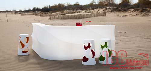 BARAONDA室外花园吧台将正弦曲线和塑料材料相结合,不同的曲率和缤纷的色彩赋予产品自由变化的外观,明亮绚丽的色彩带来生动和韵律,用户可以方便地将吧台折叠起来,放置在任意场所,或者方便地收纳。BARAONDA室外花园吧台提供了无限多的使用可能性,很难被归于一类,自成一格。产品特点包括制作专业、模块化设计、可折叠、可定制、可搭配多种配件使用。BARAONDA室外花园吧台是“意大利别样概念”的绝佳诠释。