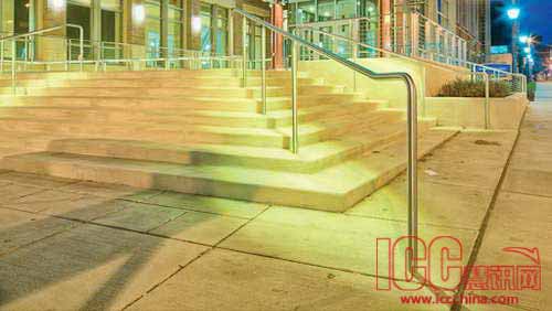 Lumenrail照明栏杆产品集团将LED灯管和金属加入了照明栏杆安装系统中。Lumenrail栏杆产品嵌入了Klik公司LED灯管,提供对称或不对称的照明分布效果。使用Lumenrail栏杆产品免除了倾斜栏杆的必要,避免了刺眼的强光,同时吸热装置还解决了栏杆与玻璃块的集热问题,将温度控制在35°C以内。