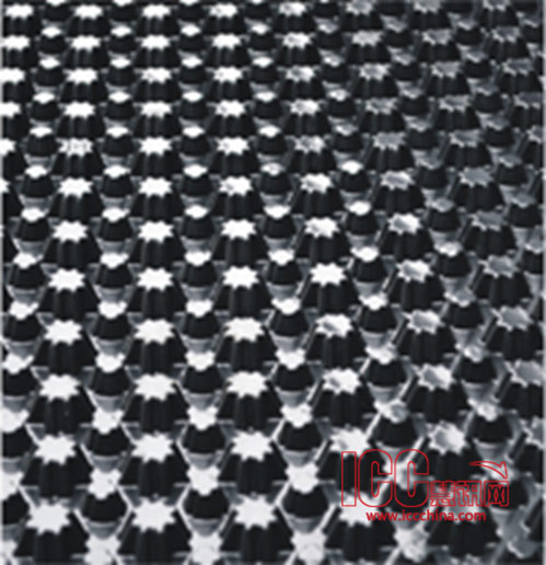 B、在绿化排水板设计上采用大平面支撑柱加圆顶柱防塌陷专利设计,克服了传 统圆柱排水板、土工布下陷堵塞防水通道的问题,保证排水空间。