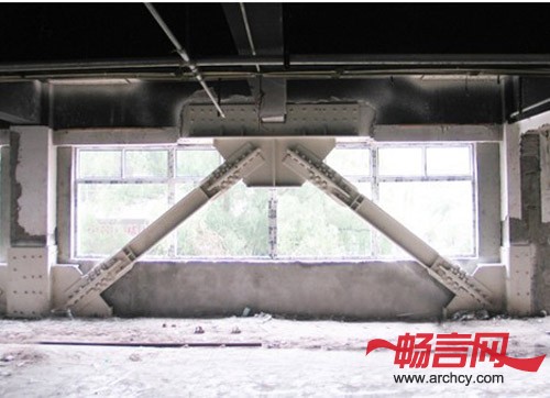 支撑构件既可保护其他构件免遭破坏,并且大震后,可以方便地更换损坏的支撑,起到建筑物安全保险丝的作用。