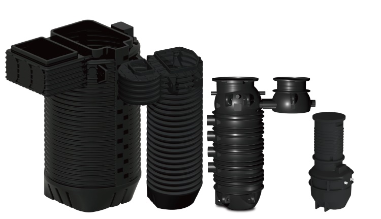 一体化预制式泵站BoxPRO用于收集和提升污水、雨水和废水。泵站筒体在工厂预制,内部预装耦合底座、管道、阀门,检修平台等部件,成套供应水泵、格栅、控制设备,具有安装周期短、占地面积小、运行可靠性高的优点,是经济、高效的泵站建设方案。BoxPRO井筒采用聚乙烯(PE)材质,滚塑工艺一次成型。