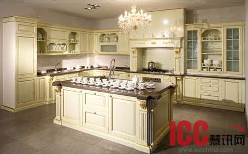 这是一款来源于意大利米兰的橱柜。米黄色加上金色雕花细节为整套橱柜穿上华丽的外衣,宫廷式的水晶灯具有典型的巴洛克式的奢华风格,展现了欧洲宫廷般的幽雅华贵。从材料上讲,四边框采用上等枫木为基材,为了避免门芯板膨胀,芯板采用国内最好的密度板,表面做封闭油漆处理,光滑的质感尤如绸缎般细腻柔滑。这套经典之作最为精湛的地方就是所有雕刻与描金都是我们技术精湛的工人师傅一刀一刀刻出来一笔一笔描上去的,这样非工业化的生产自然会导致产品本身的价格较高,但是他同时也极度内敛的张扬了主人的品位及实力。金碧辉煌这套橱柜超出了普通橱柜的概念,它除了满足最为基本的使用功能,更多的给客户带去了18世纪欧洲的生活理念,生活方式和生活品位,让客户的家中因为这套橱柜而充满古典的欧洲气息。