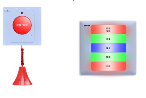 卫生间紧急呼叫:卫生间的病人发生紧急情况时,可拉紧急按钮的拉绳发出报警信号;按钮具有防水功能。