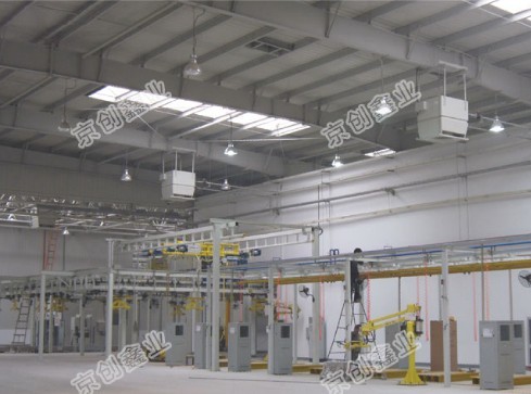 高大空间专用空调吊装在屋顶,通过设备内的冷、热交换器实现对空气的制冷或加热,然后利用高效的空气布送装置将冷、热空气由上而下均匀的分布到空间各处, 消除室内不良温度层。采用吸风式轴流风机,制热工况下有效回收散聚在屋顶的热量,使通过屋顶的热量减少到最小限度,真正达到节能效果。高大空间专用空调热媒采用热水或蒸汽,冷媒为冷水,单台覆盖面积为500到1000平米。设备控制全部由计算机和控制系统自动完成,利用无线通讯技术可实现数据采集、单机单控、恒温、定时等功能。