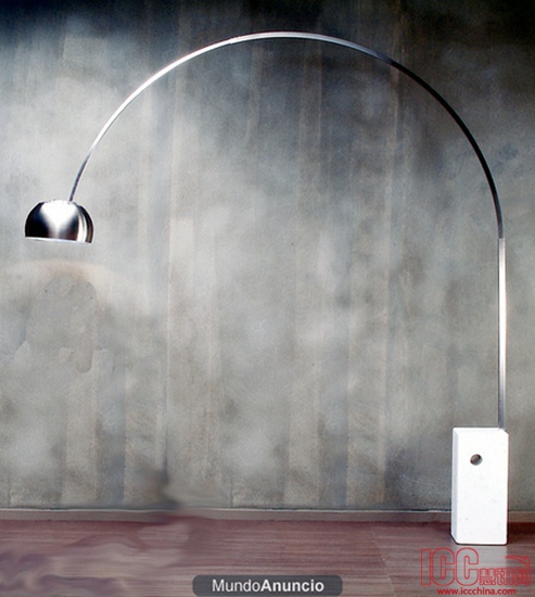 Flos Arco灯具由Achille和Pier Giacomo Castiglioni设计,是最受关注也最具代表性的意大利设计品之一。其优势在于:线条的严谨和对使用材料的细致挑选。可以放置在任何地方。其设计理念非常简单:一个可转向的镀铬金属散光器,一个长度可调的钢制弧形和一个Carrara大理石的底座。最重要的长处是:虽然Arco灯有65公斤重,却能够很容易地移动。这要归功于Castiglioni兄弟的精妙设计:在大理石底座上打了一个孔,插入一根棍子,这根棍子就变成了两个人使用的一对把手。