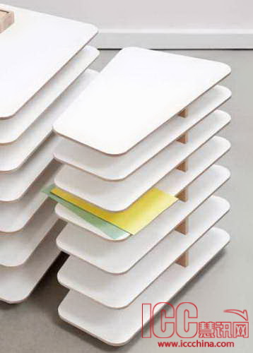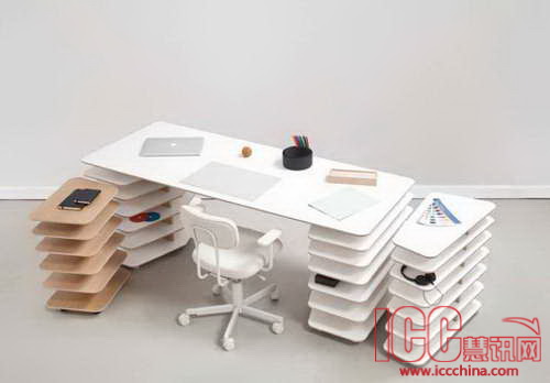 Strates办公桌系统创意十足,兼带储物功能。办公桌组成部件包括桌面、架子、小几,配合良好,摆放平稳,组装完成后行程牢固创新的组合。