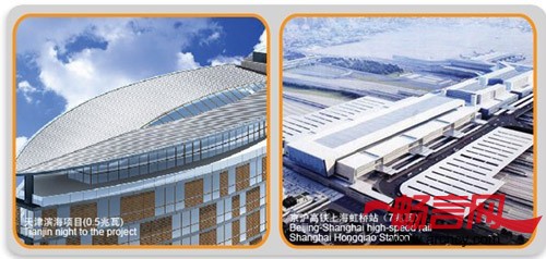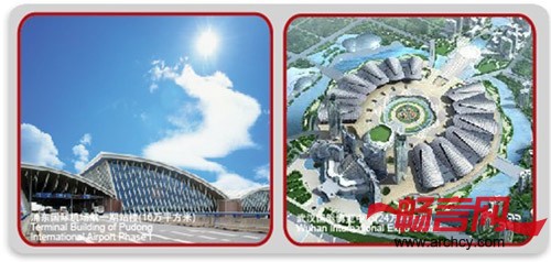 1)机场设施:浦东国际机场一期、二期航站楼;2)车站设施:泰州火车站、京沪高铁上海虹桥站;3)会展场馆:武汉国际博览中心(全国第四大博览中心);4)世博专题:世博会中国馆、国家点网馆;5)公共建筑:鄂尔多斯博物馆;6)城市综合体:烟台渔人码头、华西村(中国第八高楼)、万科蓝山;7)境外项目:特立尼达和多巴哥共和国艺术中心;8)体育场馆:江西南昌国际体育中心(第七届城运会场馆)、鞍山体育场(第十二届全运会主场馆)、武安体育场、辽宁训练中心(第十二届全运会射击比赛场地)、东方体育中心(泳联世锦赛场馆);9)太阳能电站:阿尔斯通厂房、阿拉善太阳能电站、滨海孵化楼、正泰中钢厂房。