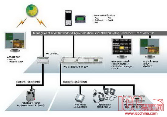 APOGEE系统是西门子楼宇科技推出的一套完整的楼宇控制系统,由Insight监控软件,各种DDC控制器,传感器和执行机构等组成。APOGEE系统自推出以来,仍在不断发展,如用模块化设备控制器(MEC) 及紧凑型PXC控制器(PXC Compact)取代以前的单元控制器(UC),用点扩展模块(PXM)取代以前的数字控制单元(DPU),将模块化楼宇控制器(MBC)、模块化PXC控制器(PXC Modular)与模块化设备控制器(MEC)、紧凑型PXC控制器(PXC Compact)的CPU升级为32位POWER PC的CPU,推出了对BACnet. LonWorks 和Ethernet BLN的支持,增加了OPC的数据开放接口,将软件平台从Windows NT升级到Windows 2000,同时支持Windows XP和Windows Server 2003,增加了对历史数据分析和能源管理的软件模块,又增加了对WEB服务的支持,允许用户利用浏览器通过Internet/Intranet访问APOGEE系统等功能。