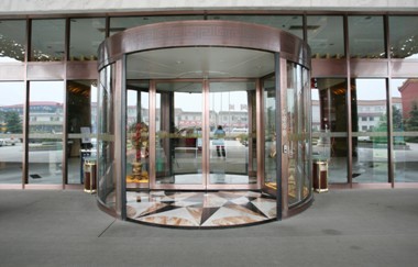 旋转门功能:旋转门的设计完全隔断了室内外的空气交换,最大限度 的节省了由于热交换所带来的能源损失。在一般条件下,安装旋转门的建筑物2年内所节省的电能费用基本相当于一座两翼旋转门的费用。