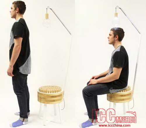 设计师Holly Bradshaw Clegg将阅读灯结合椅子打造的Pascal阅读凳,自动亮灯的秘诀在于椅垫,由许多短木棍组成的椅垫是一个触动装置,当感受到压力时,木棍会下沉并通电让灯泡亮起,只要压力一移开,灯就会自动暗掉,相当有趣而聪明。粗木棍们像弹簧一样会随著压力下沉,提供人体支撑力。这些木棍都是活动式设计,另一面端是白色烤漆的不锈钢,让使用者可以随心情调整。