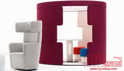 BENE TOGUNA高背沙发采用弧形、半开放设计,具有隔音特点,适用于企业“头脑风暴”或短会功能。引人注目的外形使TOGUNA高背沙发成为每个办公室的视觉亮点。沙发的弧形设计方便移动,并象征对于僵硬结构的突破。TOGUNA半开放高背沙发提供两种不同款式,即适用于站立交流的高背款式和供坐下使用的低背款。TOGUNA沙发包含皮革或织物面料的三套软垫。沙发平面是两块式中密度纤维板。半开放空间顶部天花板安装了节能型环形灯管。