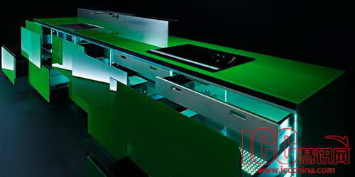 Valcucine公司在经历了漫长的材料研发,研究材料的耐受极限后,最终开发出100%可回收玻璃。Valcucine开发出INVITRUM玻璃铝材生态型厨房,其基座完全采用回收铝材。回收铝材的生产过程仅耗费常规铝材所需能源的5%。传统厨房橱柜侧面相连,造成两块刨花板的使用,其厚度达到36mm。为了改变这一浪费现象,INVITRUM的玻璃基座仅有10mm厚度。厨房玻璃基板易于拆除,仅采用机械接头,无粘合剂连接。
