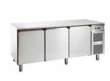 BONGARD冷藏工作台用来存储糕点食品。新鲜食品放置在400X600mm的等温托盘上,保存温度介于0℃-10℃。通风冷气使冷藏室维持均匀温度。产品元件包括不锈钢等温板(厚度55mm);花岗石(厚度30mm);可调节桌脚;可回收冷凝水;方便移动的U型导轨;内置压缩机;氟利昂气体R型134A;电子温控器(0°C-10°C)。
