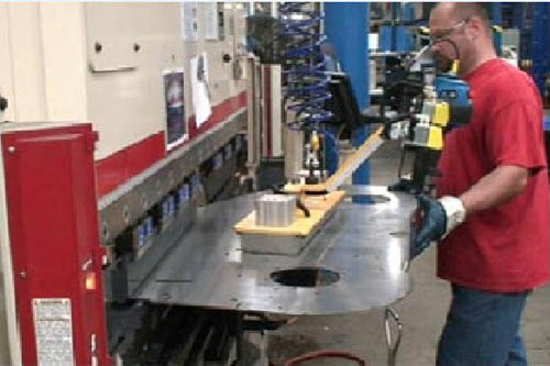 ●降低工人的劳动强度和操作困难度。现在,该工位仅需一个工人即可轻松操作——工人使用高博Easy Arm™吊装起一整块钢板后进入浮动模式,精确地将钢板送入折弯机中。Easy Arm™的G360组件保证钢丝绳和螺旋线不会纽结,使工人无需调整即可轻松转动钢板进行多面折弯;