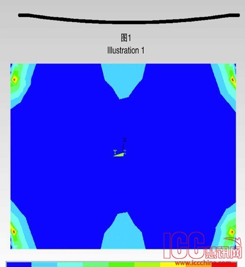 当采用固定夹具,玻璃四角被夹具嵌固住无法自由变形,如上图所示玻璃四角变形转折点应力过大,为降低应力必须增加玻璃厚度,造成浪费。