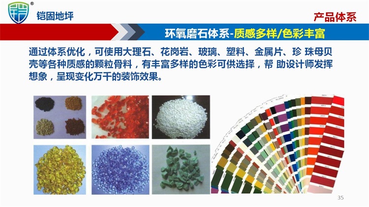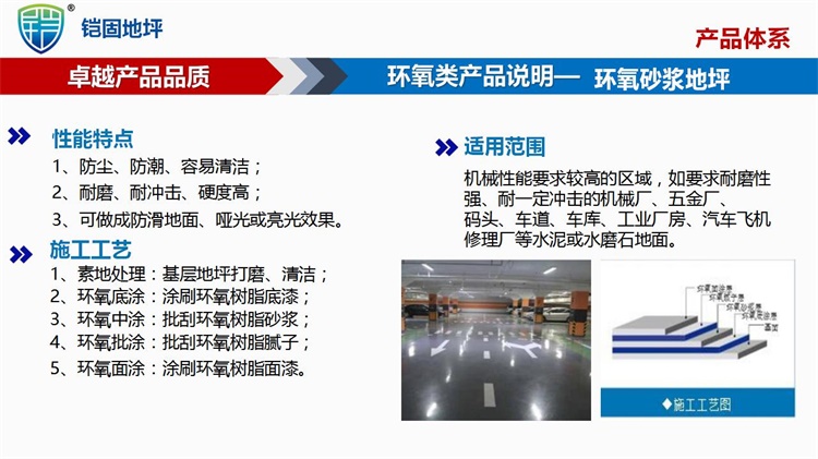 公司主要经营范围:耐磨地坪材料、建筑装潢材料、环氧树脂地坪、水性涂料、化工原料{除危化品}的销售服务、建筑地坪材料施工。