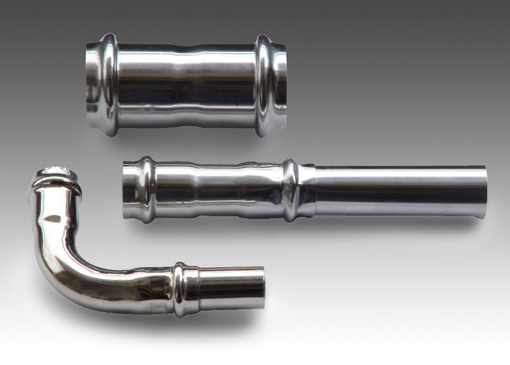 三、环压不锈钢管:环压式连接技术搜索指利用专用工具在不破坏不锈钢内部金属晶体排列的情况下的一种连接方式,它采取管件与管道同心圆环状压缩紧固的方式,环压式连接弥补了以往卡压及其它连接方式管道耐压低、漏水及施工困难的不足,具有优良的卫生指标、耐温范围广、钢度好、强度高、安装简便、维护方便等优点。