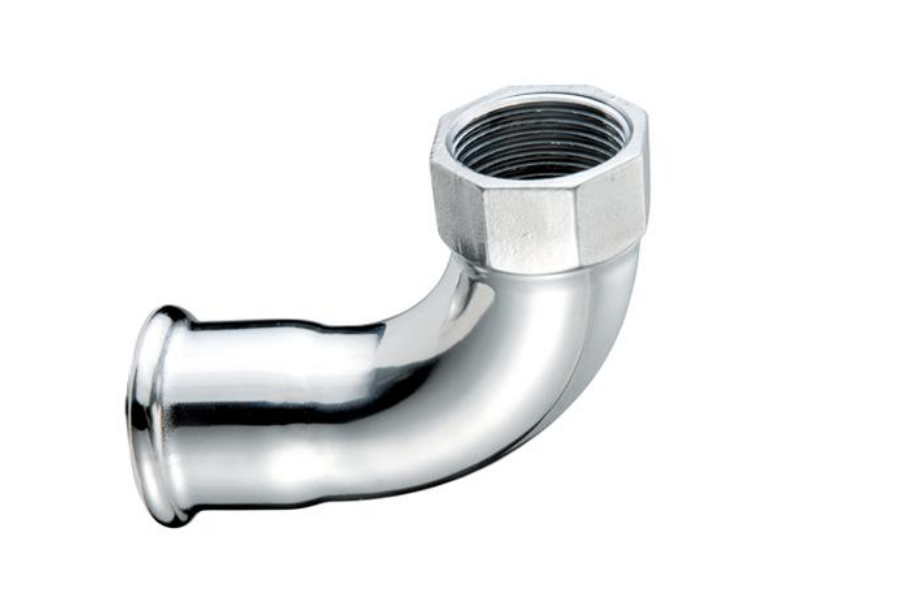 单卡压式不锈钢管件连接技术是一种“快速活接式连接管件”。其安装技术特征在于:以专用扩管工具在薄壁不锈钢管端的端口,由内向外辊压使管端形成一道凸缘环,然后将管材插入带有承插口锥台形硅橡胶密封圈和锁紧螺母的管件中,拧紧锁紧螺母时,靠凸缘环推进压缩锥台形硅橡胶密封圈而起密封作用。