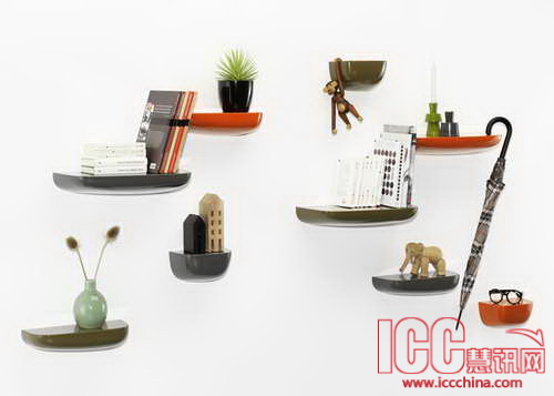 法国设计师Bouroullec兄弟为瑞士Vitra家具公司设计了新的三色Corniches搁架。设计师选择了深灰、卡其色和橘色补充了原先黑色、白色、红色系列。Corniches是一组具有圆形底部的搁架,能创造功能墙面景观。产品选取ASA塑料,带有高亮泽度,提供多种尺寸和形状。Bouroullec兄弟设计的杂乱电线吊灯已经投产,二人设计生涯展也在巴黎Les Arts Decoratifs博物馆成功举行。