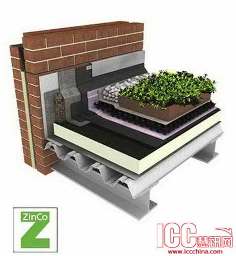 ZinCo拓展型屋顶绿化系统的安装高度为100mm(包含排水层在内),一般无需灌溉