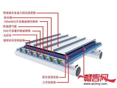 屋面系统:AST-65直立锁边铝锰镁合金屋面系统