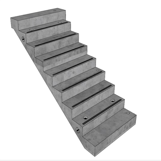 预制混凝土楼梯,以钢筋、混凝土为主要原材料制成的楼梯,通过预埋件,外漏钢筋与平台梁连接。使用预制楼梯板可以大大节省在施工过程中针对楼梯等异形构件的复杂工序,从而提高生产效率。