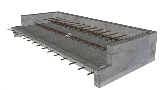 预制混凝土叠合板作为建筑楼板的下层部分,可作为永久性模板,在施工荷载作用下具有足够的强度、刚度和抗裂性。其内部构造是由钢筋网片与其上部外露钢筋桁架与混凝土一起浇筑而成。楼板预制对提高施工作业环境和节约木材资源有重要意义。