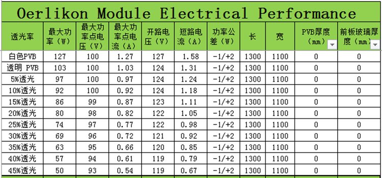 (4)对于有特殊颜色要求的项目:薄膜电池可以通过控制膜层的厚度,调节薄膜电池颜色的深浅,同时,使用不同颜色的PVB胶片和不不同的激光刻划宽度来实现薄膜组件不同的外观。
