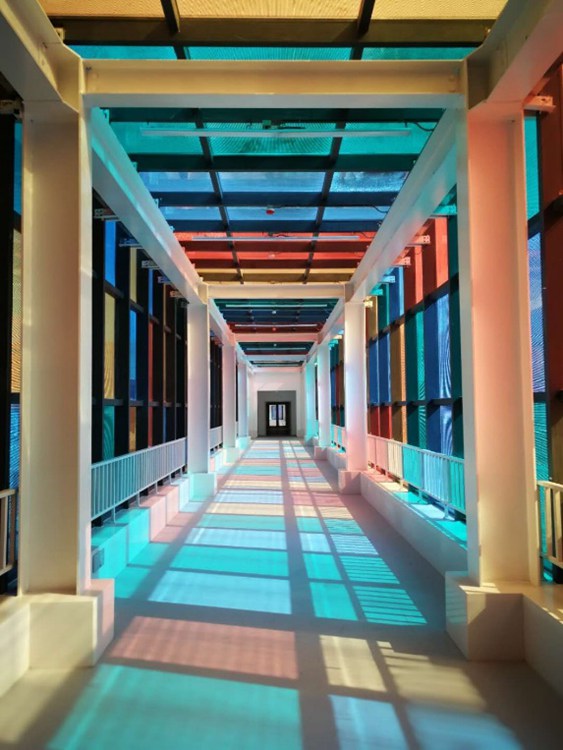 (2)薄膜光伏组件弱光发电强,颜色可通过PVB胶膜调节,透光均匀,从而在节能发电的同时,满足建筑采光、隔音、隔热等建筑功能的设计要求,增加建筑的美观性;