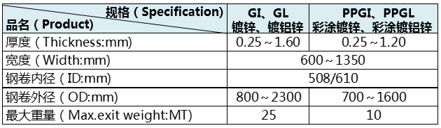 产能:CGL(连续镀铝锌线):31.20万吨/年 CCL(彩涂线):20.16万吨/年