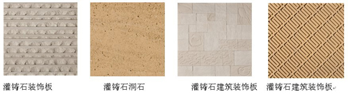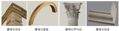 灌铸石产品是上海金石企业自行研发的高科技、低能耗新型建筑材料,具有天然石材典雅、质朴、柔和的质感;可以制造出任意客户需要的颜色;它的形状没有限制,可以根据客户的要求制造出任意造型、大小不同的门窗套、线条、宝瓶、柱饰、墙饰、檐口托、景观陈设品和表面造型复杂的挂板等,给建筑师和业主提供了充满无限构思的设计空间和表现手段,满足客户创造性和个性化的需求。