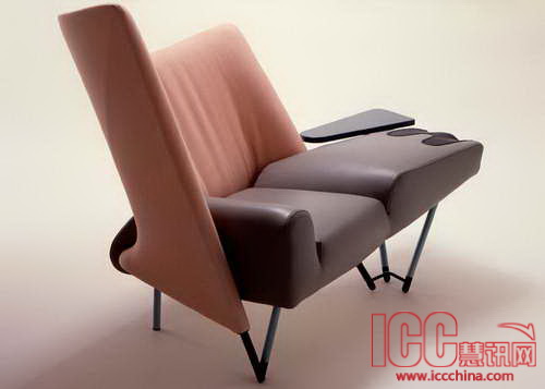 654 TORSO扶手椅采用不对称设计,含带有钢骨架的沙发和脚凳,内部填充无氟聚氨酯泡沫塑料和聚酯材料。金属支撑材料为灰色或浅蓝色,椅脚为黑色塑料材质。沙发面料是织物或真皮。用户可选择不同的座椅和靠背材料和颜色。台面为圆形或三角形,颜色分别为灰色、黑色或赭石色。