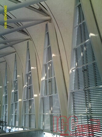 技术独特的连杆驱动机构,叶片夹设计,可水平或立式安装,更保证三角形、梯形等不规则面也能实现电动遮阳,不失景致和谐之美;适用于各种公共建筑平面,立面和斜面的建筑遮阳。冲孔面可增加建筑立体效果、通风性好、既能遮档强光又能合理采光防止眩光、冲孔百叶自重轻、隔热性强、装饰性好。广泛用于建筑顶面及外墙遮阳隔热、通风、装饰等。叶片颜色可根据设计师或业主要求选择,完美配合建筑装饰,是大型建筑室内、外遮阳的最佳选择。可水平或立式(含固定)安装,适用于各种现代建筑的大型玻璃幕墙和玻璃天顶、平面、立面和斜面建筑室内外遮阳。