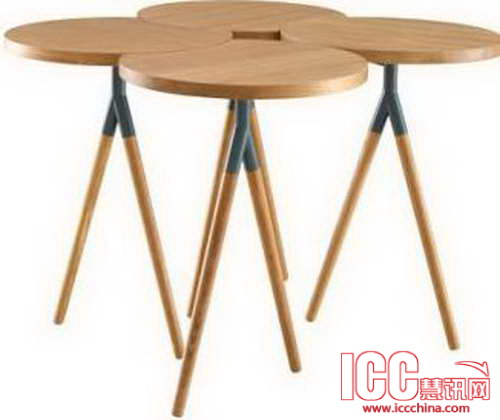 ITISY创意木桌采用桌案设计,可转变成餐桌。产品设有金属球形接头,可将四个桌面连为一体,构成大约110cm边长的方桌,舒适的容纳四人就餐。两条桌腿支撑橡木桌面,任何一种组合方案均能创造优雅别致的效果。桌面为天然实木橡木。木材表面刷有清漆,桌腿为美国核桃木。