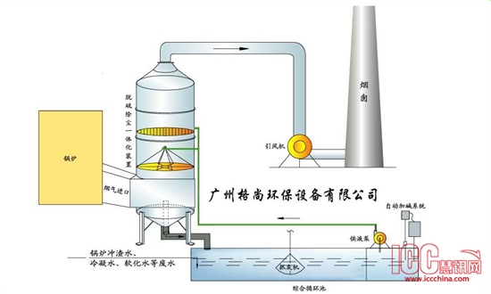 DGS 系列酸雾净化塔采用氢氧化钠溶液作为吸收中和液。酸雾废气由风机压入净化塔的中段内筒形成压力室,再由压加重室均配给各根鼓泡管,废气通过鼓泡管进入贮液箱的吸收中和液中产生鼓泡,气泡通过滤料环层,使气液再次得到充分接触后,经脱液风脱液,然后排入大气。根据以上设计原理,改进了一般玻璃钢净化塔的结构,采取了以下措施: