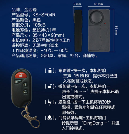105dB超响警报声设计,有效震慑入侵盗贼。