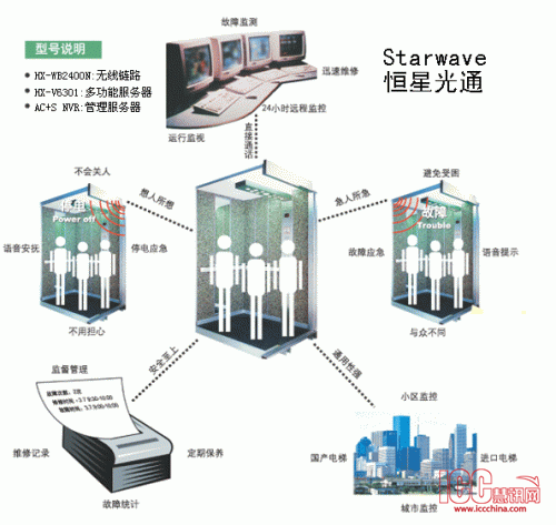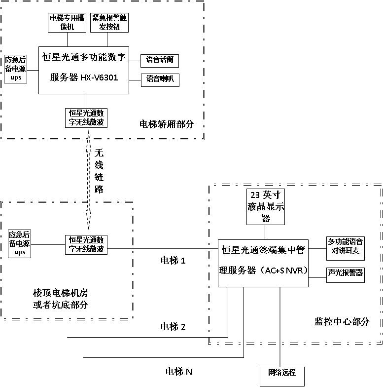 北京恒星光通全新推出第三代智能化数字高清电梯无线监控系统,新系统集合了---高清视频监控系统,语音对讲系统,紧急按钮报警系统,三网合一,只需一套系统,三种功能全能实现。恒星光通专注无线传输,十三年品牌保证,经中安协认证,技术领先。自主研发,国内首创,已成功应用全国各地数千部电梯。