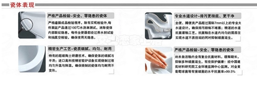 6、盖板、水件均是高分子工程材料ABS的。盖板添加了抗氧化剂,不易变色不易老化,抗冲击力强;水件获得了多种国际认证:CSA、ASSE、UPC认证。 瓷质陶瓷,用115米长的遂道窑经18小时最高1268℃的高温烧成,产品质量稳定,玻化程度高,吸水率小于0.2%。(不会变色,不发臭及不风裂。)