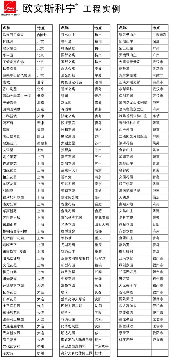 欧文斯科宁成立于1938年,总部位于美国俄亥俄州托莱多市,亚太区总部位于中国上海,在包括中国、日本、韩国、东南亚、澳大利亚、新西兰和印度在内的各个国家、地区都设有工厂、销售办事处及覆盖广泛的分销网络。2005年,公司在上海成立亚太区科学技术中心,更近距离地为客户提供技术支持、解决方案和应用方案开发的服务。目前欧文斯科宁在广州、上海、南京、鞍山、天津、江阴、北京设有7家建筑材料工厂和1家复合材料工厂。